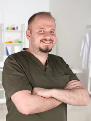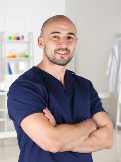 Na manhã seguinte, você fará a coleta de sangue no laboratório, seguida por um exame preliminar detalhado e consulta com o médico. A região problemática será medida utilizando a tecnologia mais recente, e um plano será elaborado com precisão. Em seguida, você será preparado para a operação. O seu intérprete de português estará sempre disponível na clínica nesse dia.