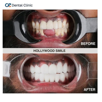 O Hollywood Smile é a solução definitiva para um sorriso impecável, radiante e alinhado. Com coroas de zircônia e facetas E-max personalizadas, este tratamento aprimora a forma e a cor para um resultado deslumbrante e natural.